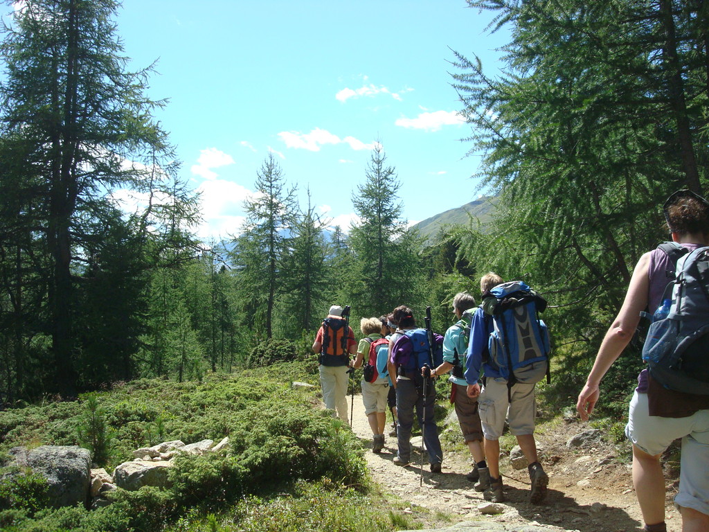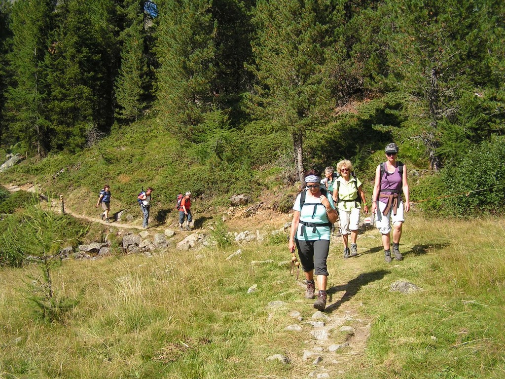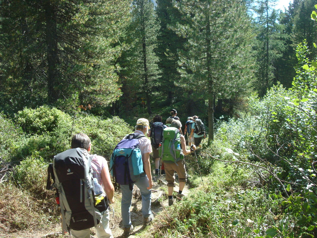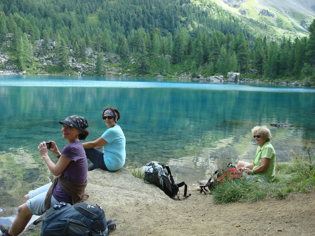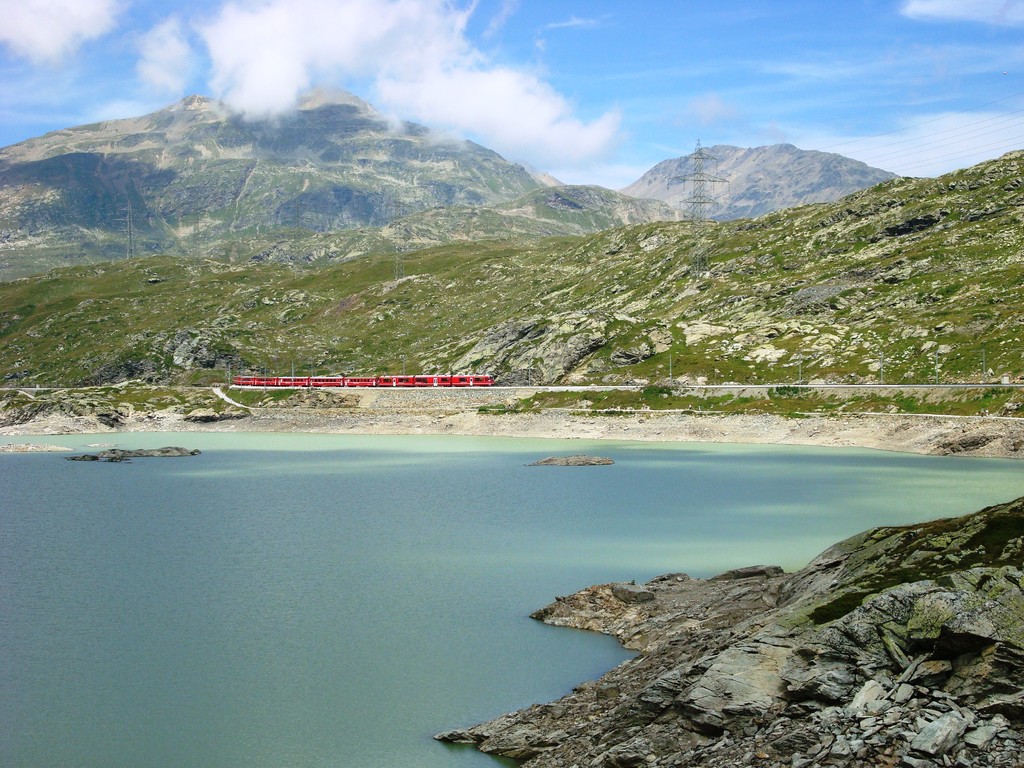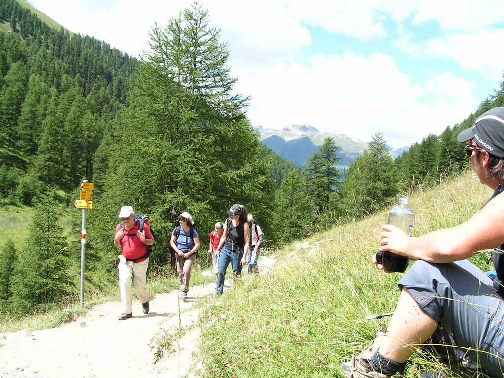 die zweite Gruppe nimmt etwas gemütlicher und wandert von Le Prese aus dem See entlang nach Miralago. Dann gehts mit dem Zug zur Besichtigung des Städtchens Poschiavo mit Kaffehalt. Weiter fahren wir mit dem Zug bis Alp Grüm. Von dort wandern wir zum Bernina Hospiz. Im Zug treffen wir wieder den Rest der Gruppe und fahren im offenen Wagen nach Pontresina und weiter über Albula nach Hause.
