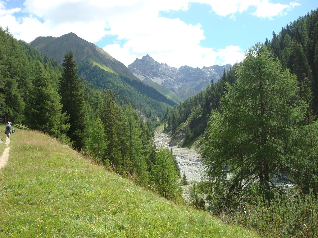 Mit dem Zug fahren wir via Vereina ins Engadin bis nach Cinuos-chel-Brail. Dass der Bus vor der Nase abfährt nehmen wir gelassen und starten halt die Wanderung ohne murren bereits hier anstatt erst beim Parkplatz des Nationalparks. Übernachtet haben wir im italienischen Livigno und in Le Prese im Val Poschiavo.