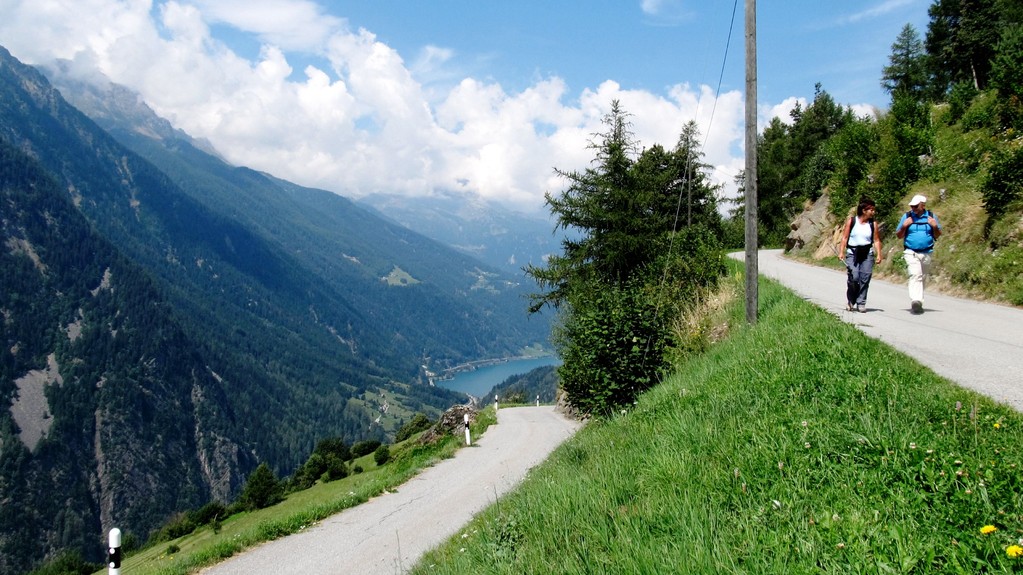 eine Gruppe Stieg von Miralago zur hoch oben gelegenen Kirche San Romerio, die zweite Gruppe nimmts etwas leichter und lernt das Puschlav kennen.