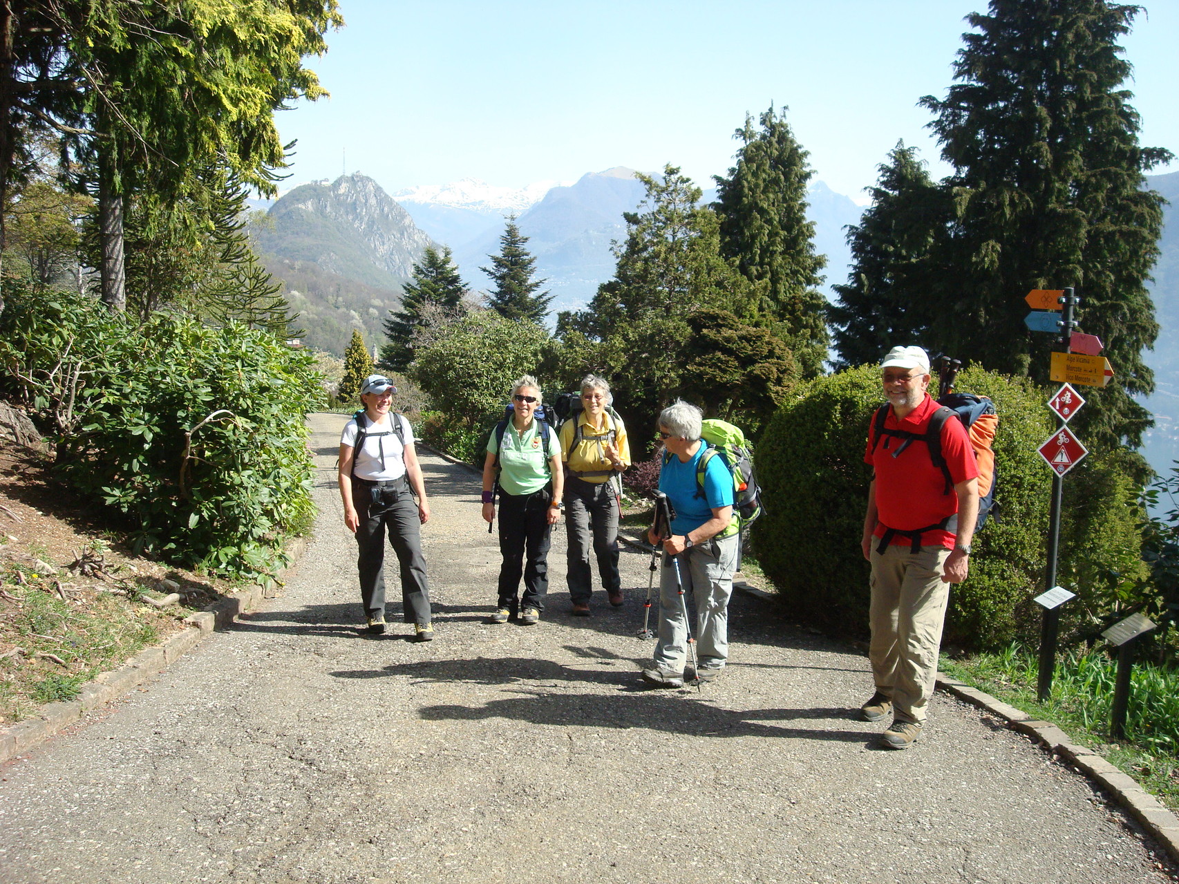 16 Bergfreunde und Bergfreundinne liessen sich das Frühlingswochenende im Sottoceneri nicht entgehen: Andrea, Daniela, Alda, Esther, Astrid P, Astrid N. Christian, Emmi, Heidi, Uschi, Walter, Stephan, Yvonne, Elisabeth, Analiesa, Edith.