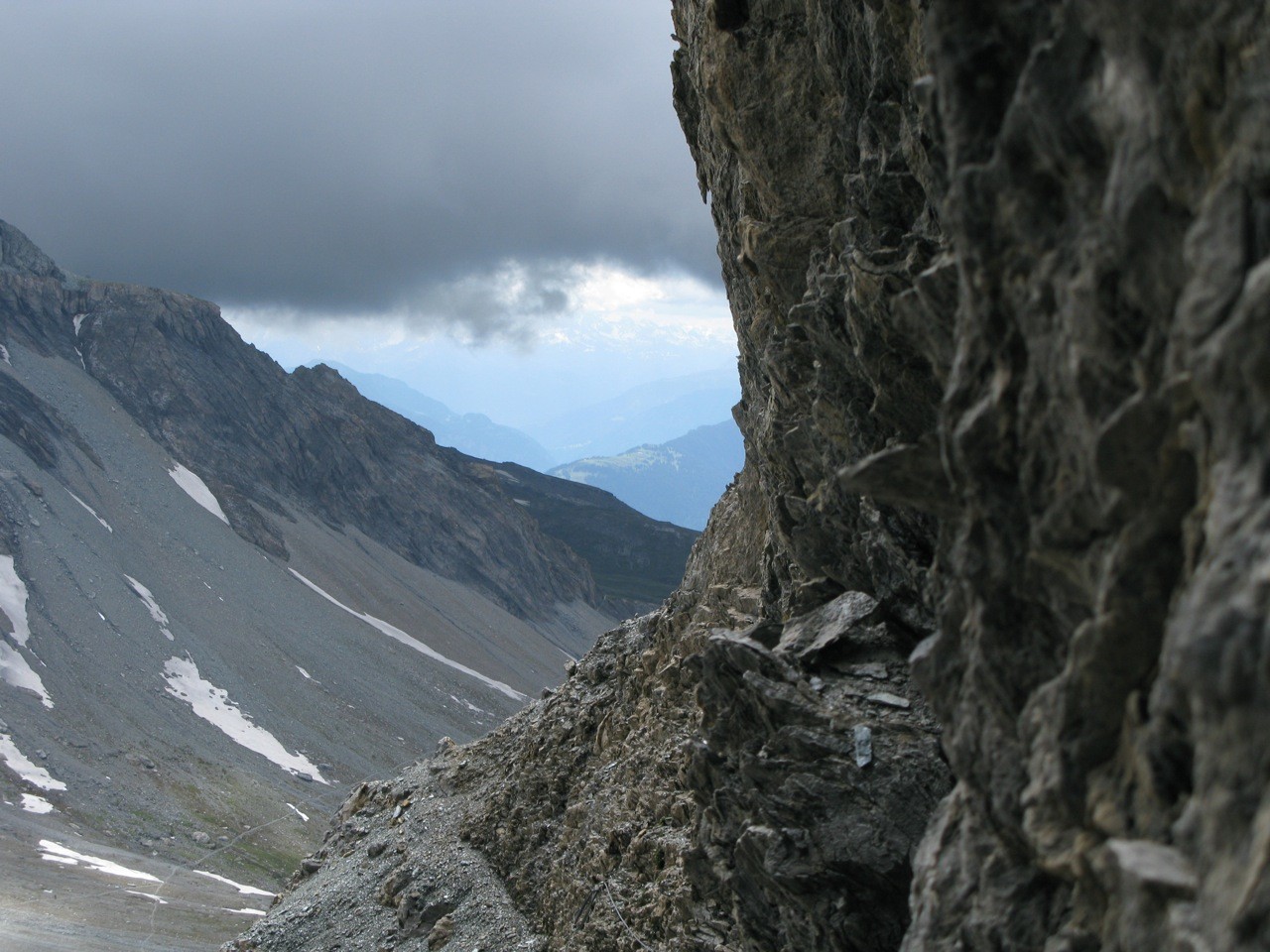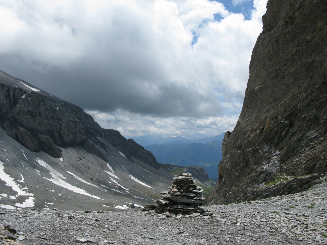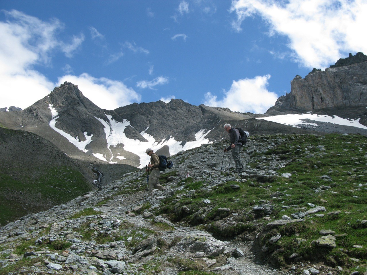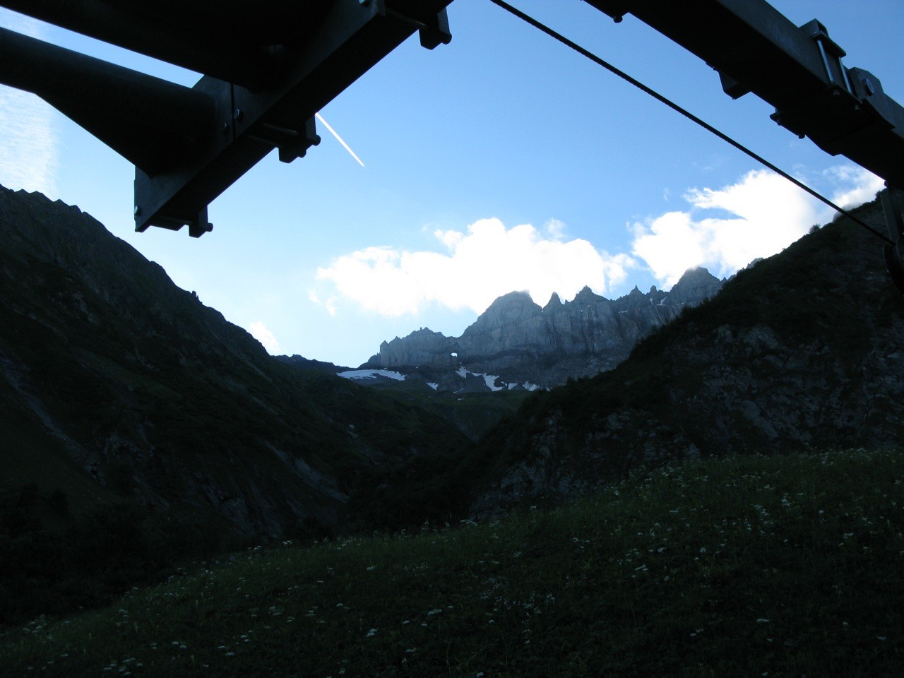 Tschinglenalp (Bergstation Nideren der Tschinglenbahn 1620m)-Weg zum Segnespass bis etwa 2200m-dann südwärts weglos zu den Schutthalden unter den Tschinglen-hörnern-angeseilt und z. T. mit Fixseilen gesichert in steilem, anspruchvollem und z. T. felsigen Gelände zum Loch hinauf-und auf dem fast gleichen Weg wieder zurück.