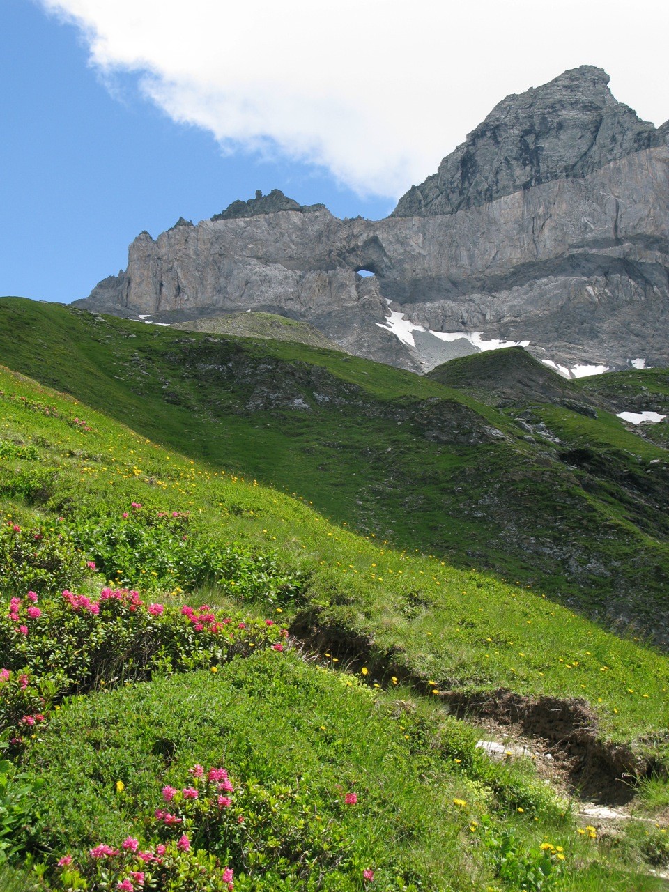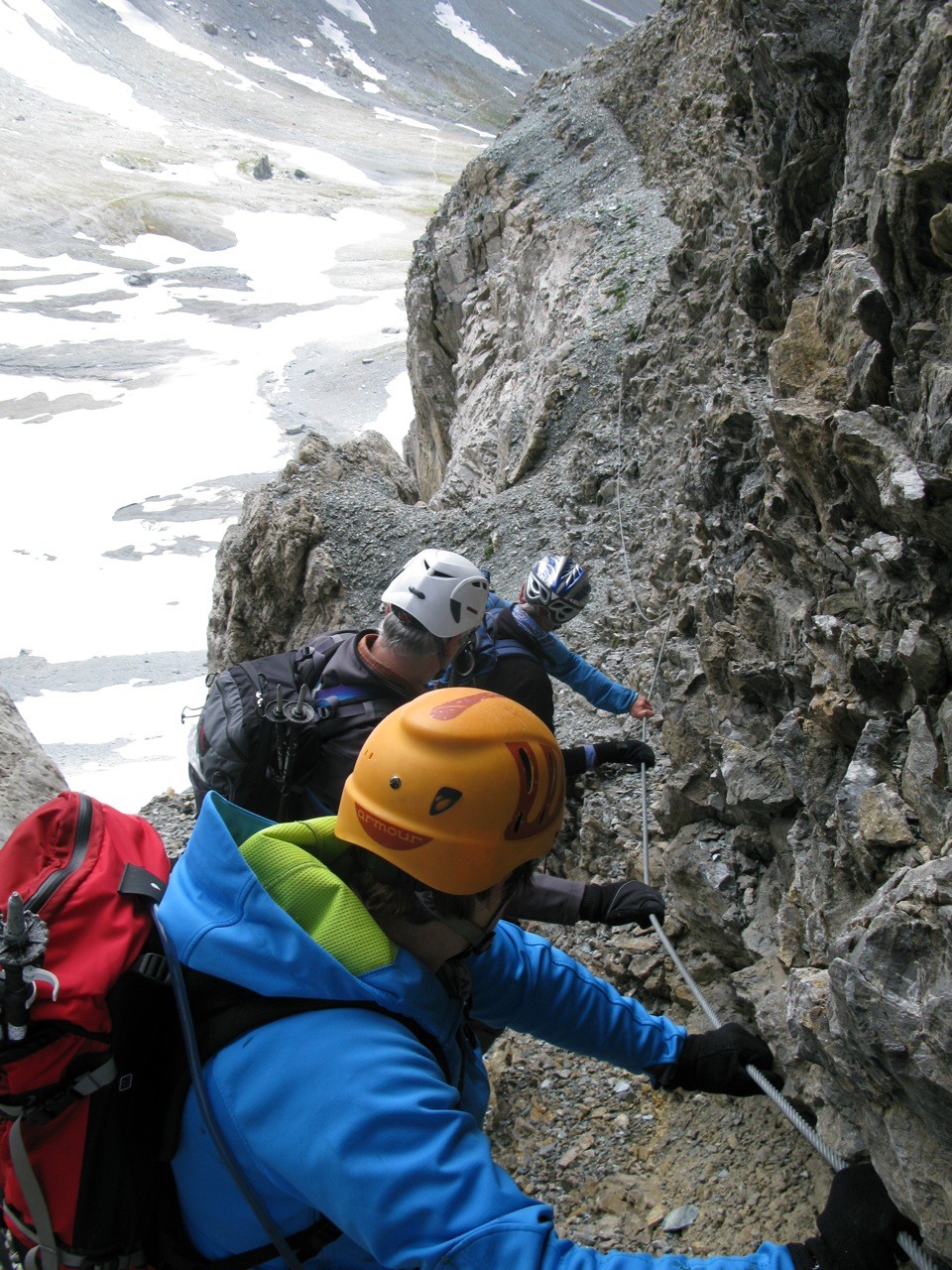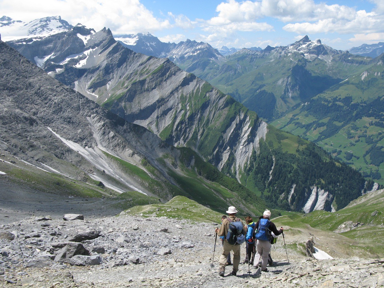 Tschinglenalp (Bergstation Nideren der Tschinglenbahn 1620m)-Weg zum Segnespass bis etwa 2200m-dann südwärts weglos zu den Schutthalden unter den Tschinglen-hörnern-angeseilt und z. T. mit Fixseilen gesichert in steilem, anspruchvollem und z. T. felsigen Gelände zum Loch hinauf-und auf dem fast gleichen Weg wieder zurück.