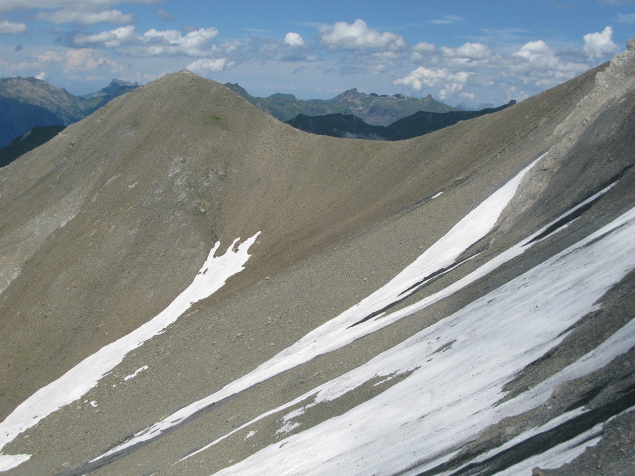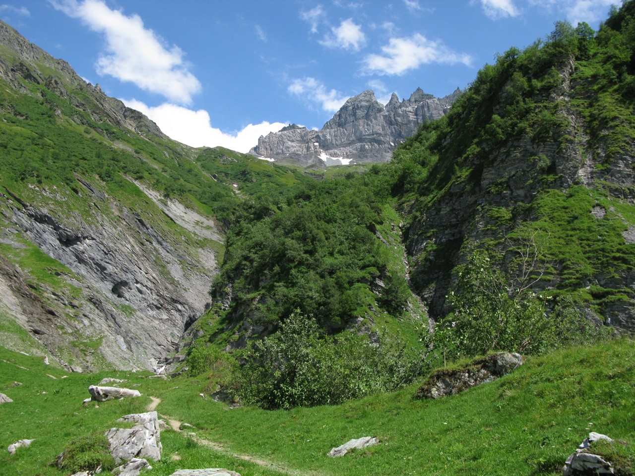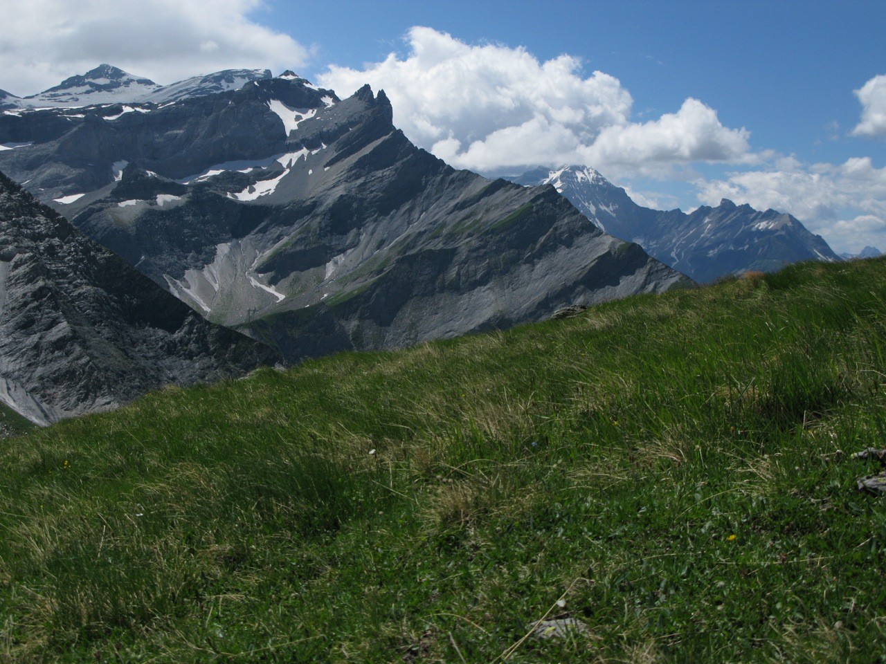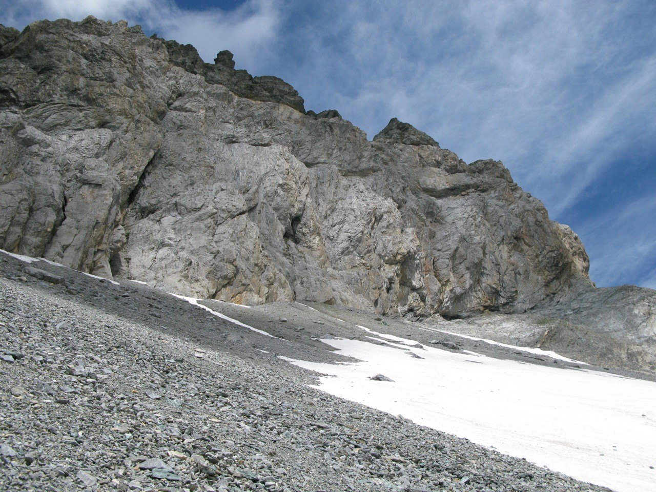 Tschinglenalp (Bergstation Nideren der Tschinglenbahn 1620m)-Weg zum Segnespass bis etwa 2200m-dann südwärts weglos zu den Schutthalden unter den Tschinglen-hörnern-angeseilt und z. T. mit Fixseilen gesichert in steilem, anspruchvollem und z. T. felsigen Gelände zum Loch hinauf-und auf dem fast gleichen Weg wieder zurück.
