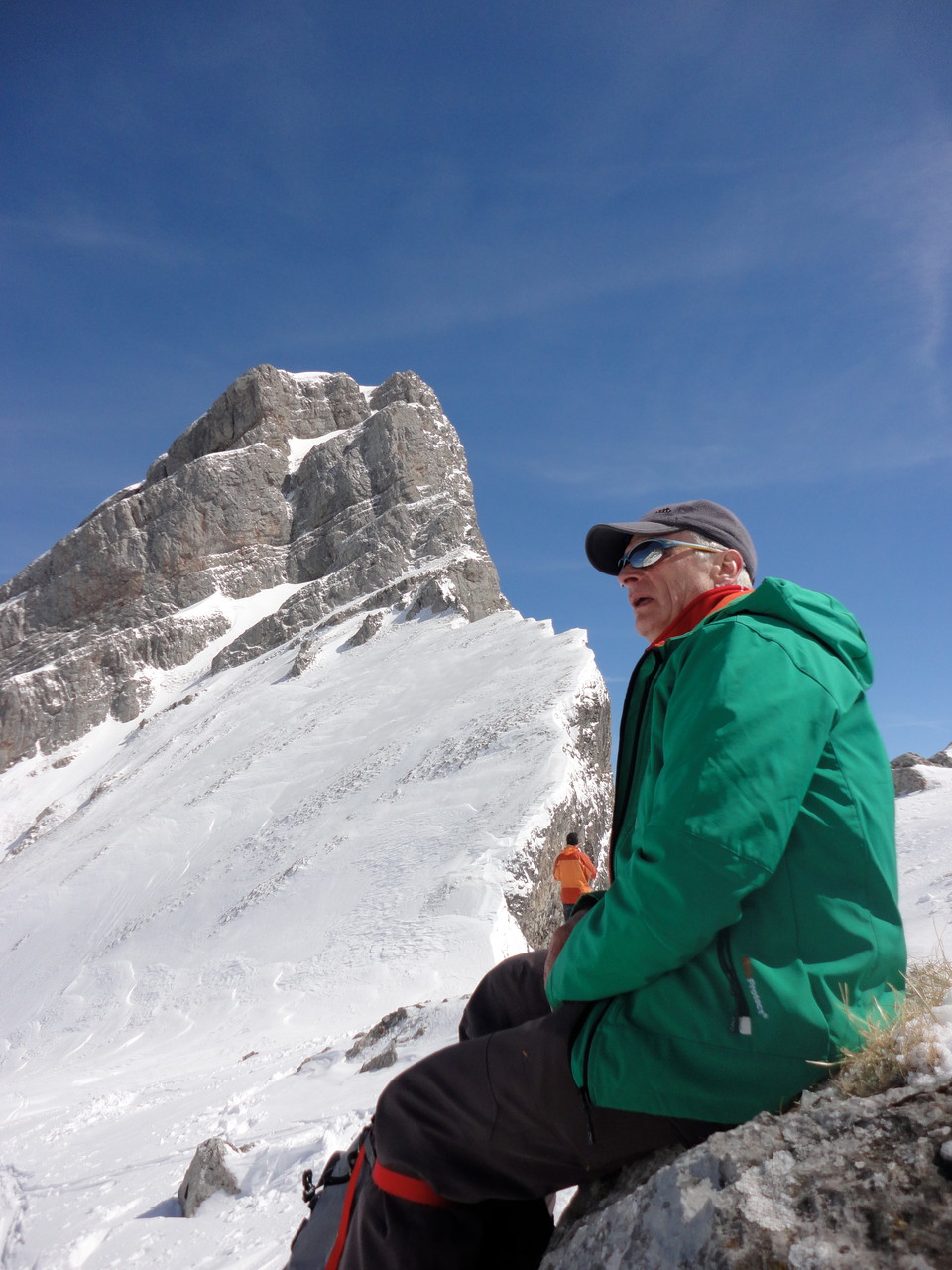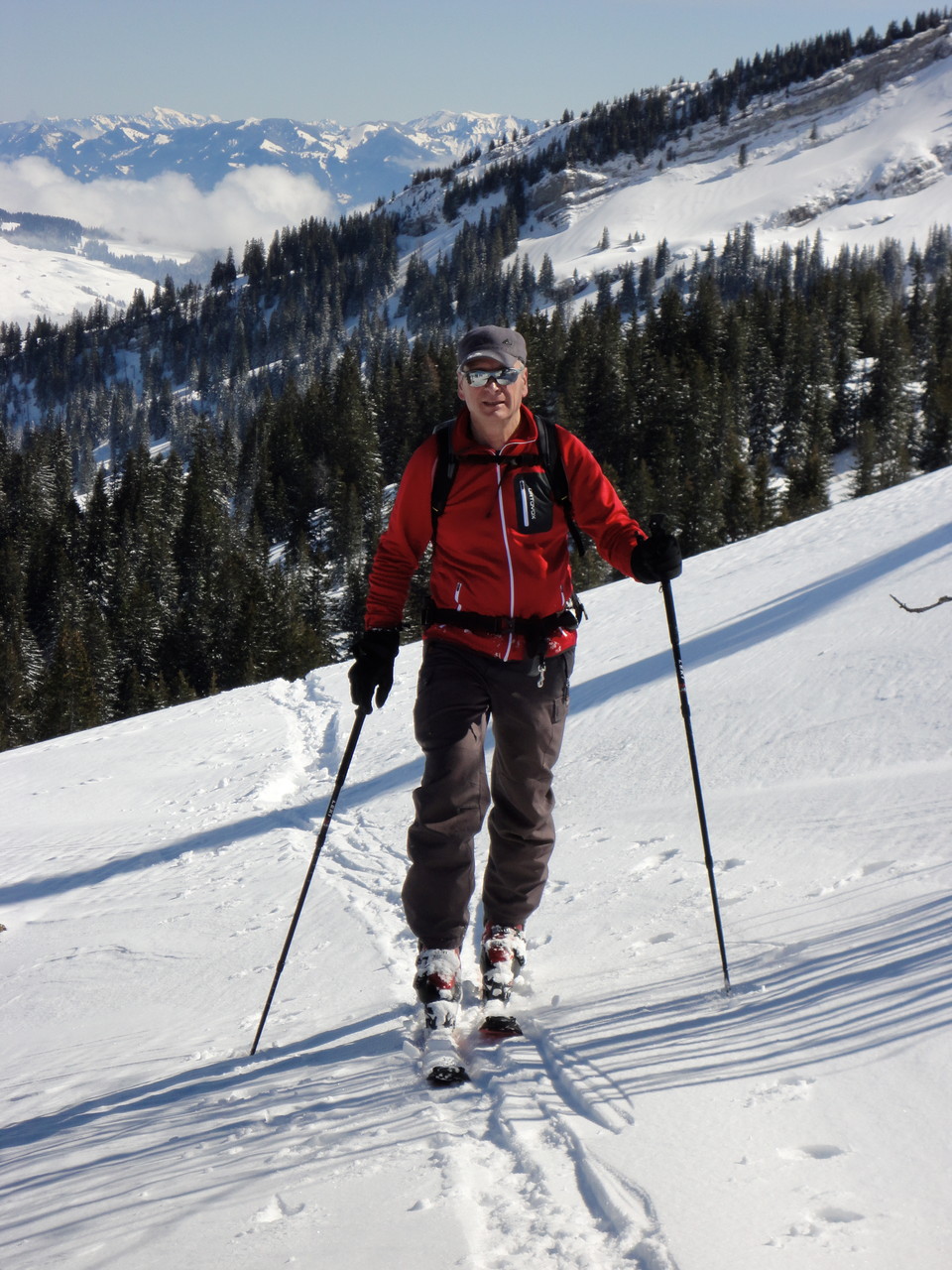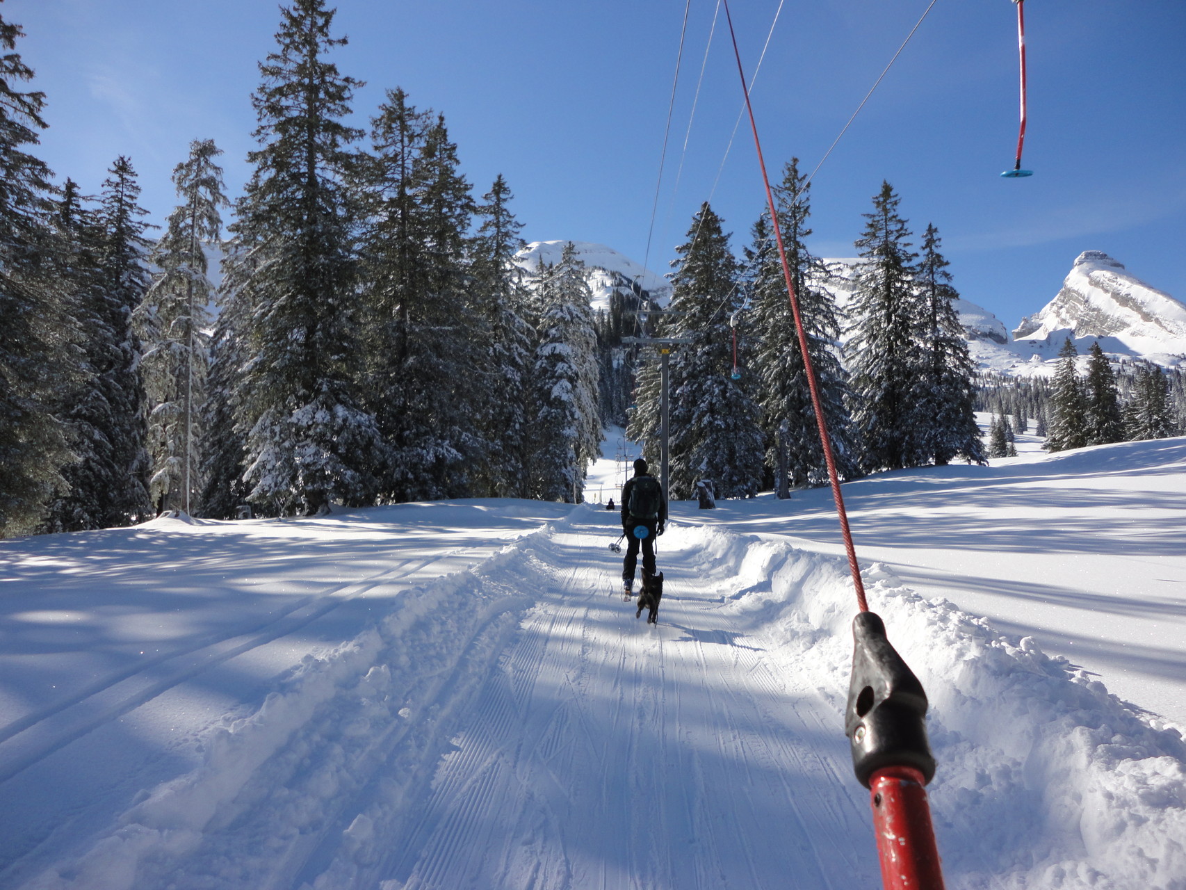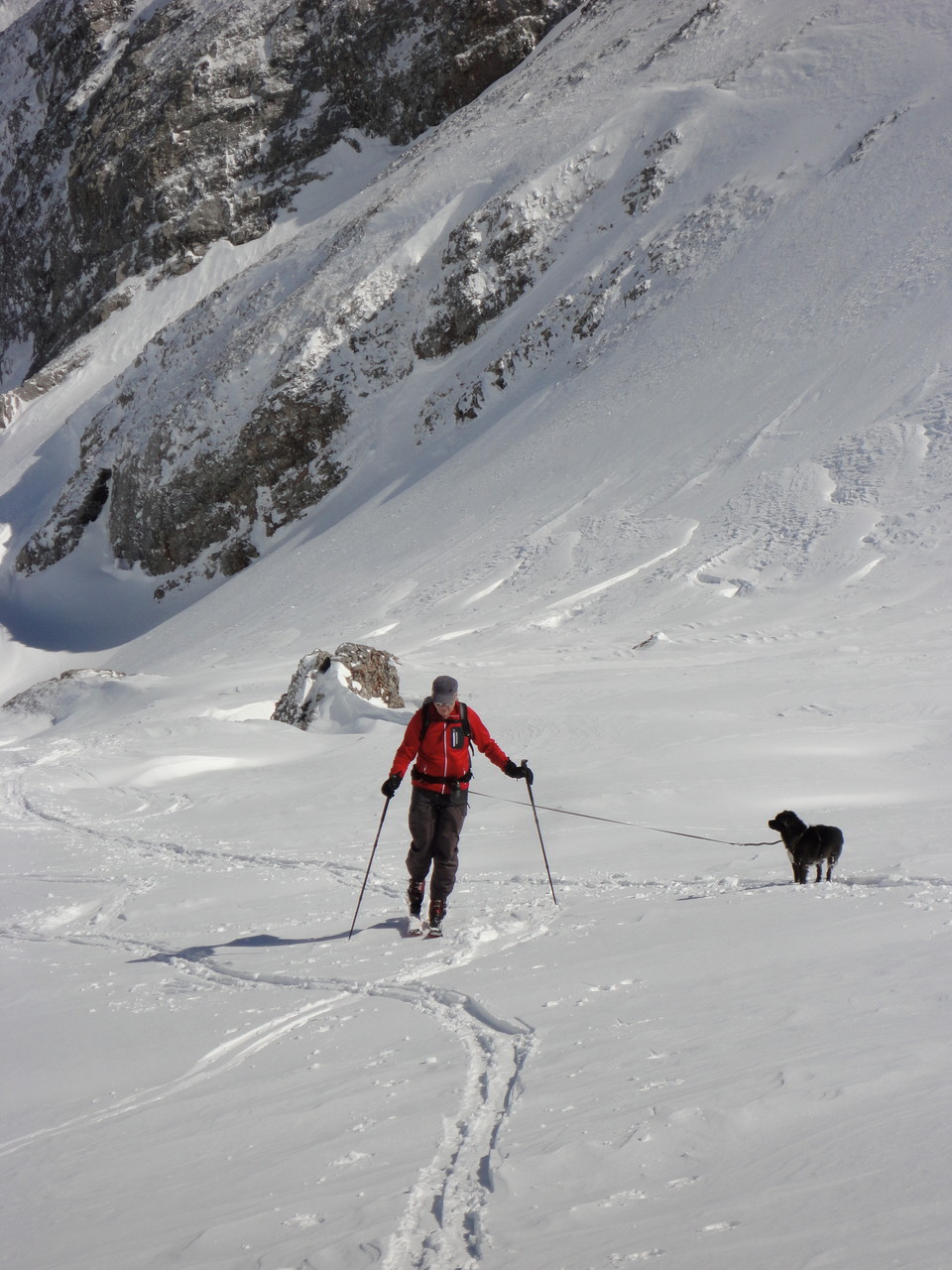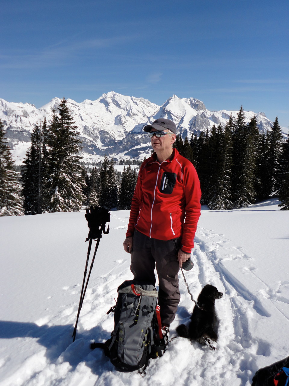 Die vorgesehene Velotour ist zwar ins Wasser gefallen. Dafür hat der Neuschnee  gelockt.  Wir hatten zu zweit (Mathias und Karl) und mit Vierbeiner Calvin eine Supertour ins Frümseltal bei schönstem Wetter und perfektem Pulverschnee.